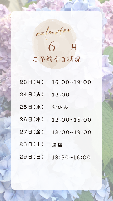 【6月23日(月)~6月29日(日) ご予約可能枠】