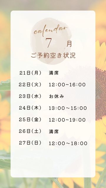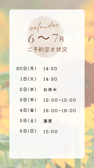 【6月30日(月)~7月6日(日) ご予約可能枠】